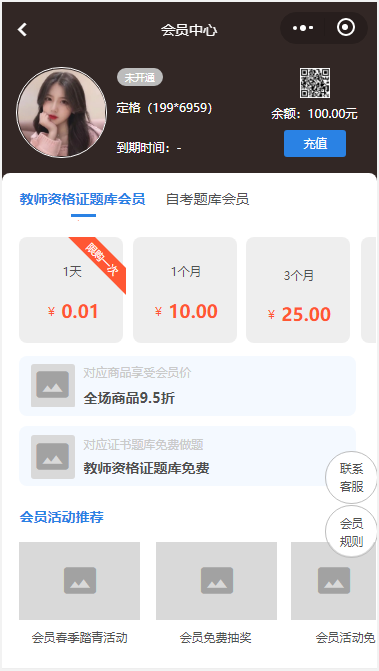 会员用户可依据自身已充值的金额,在达成充值目标后,提升自己的会员等级;